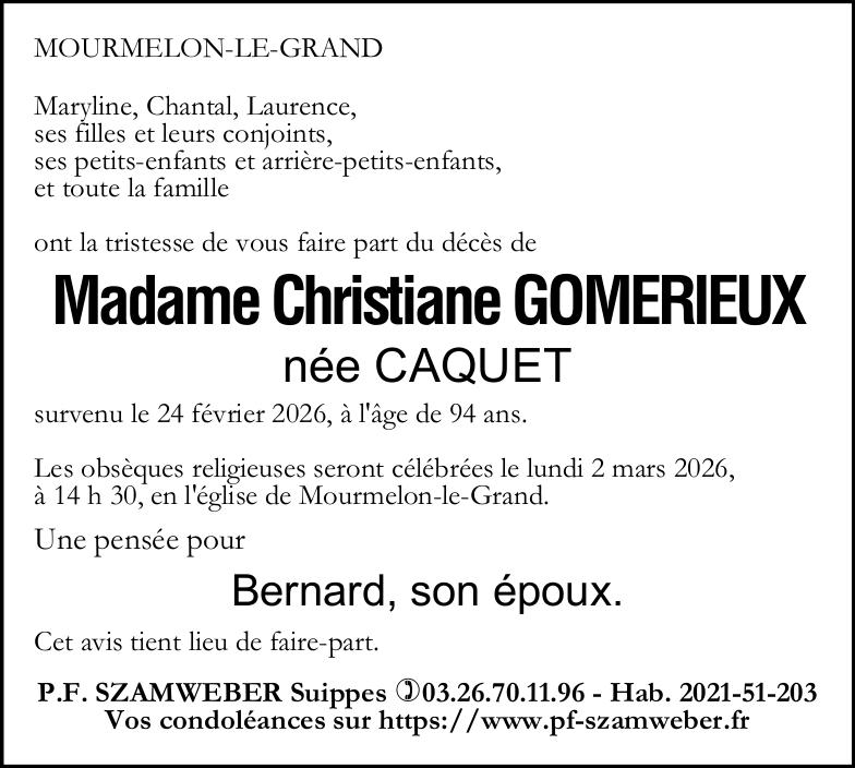 Veuve de Monsieur Bernard GOMÉRIEUX