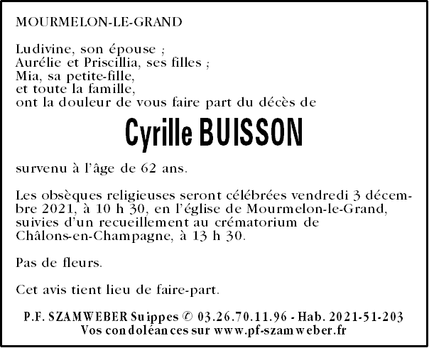 Décédé à Mourmelon-le-Grand (51400, France) le dimanche 28 novembre 2021 à l'âge de 62 ans