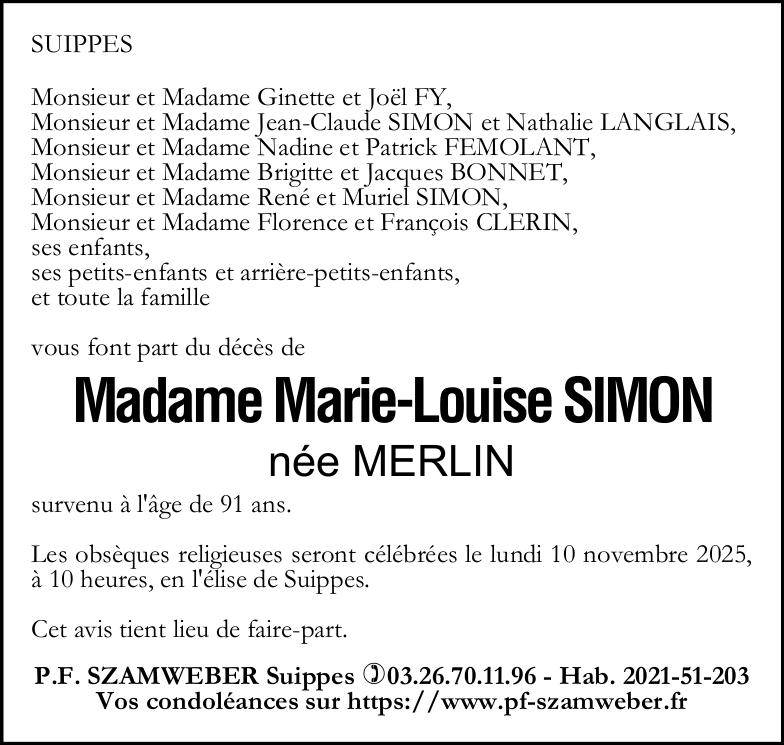 Décédée à Suippes (51600, France) le lundi 3 novembre 2025 à l'âge de 91 ans