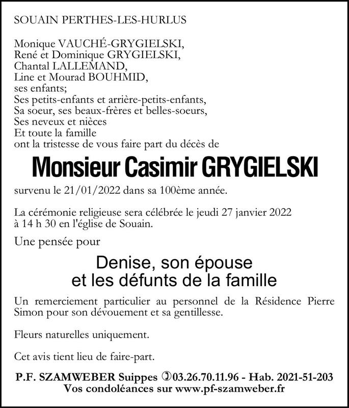Décédé à Suippes (51600, France) le vendredi 21 janvier 2022 à l'âge de 99 ans