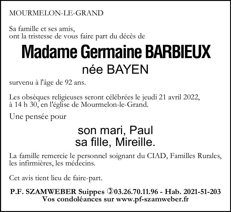 Madame Germaine Estelle Léontine BARBIEUX née BAYEN