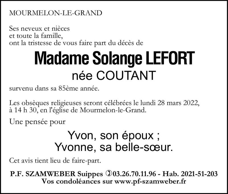 Madame Solange LEFORT née COUTANT