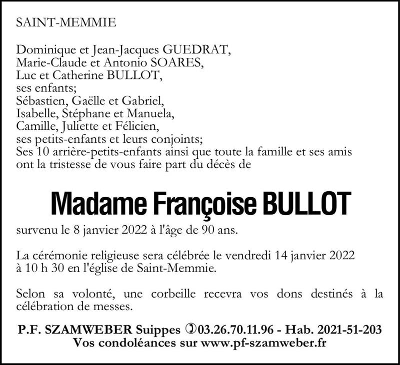 Veuve de Monsieur Michel BULLOT