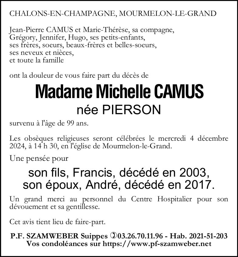Décédée à Châlons-en-Champagne (51000, France) le vendredi 29 novembre 2024 à l'âge de 99 ans