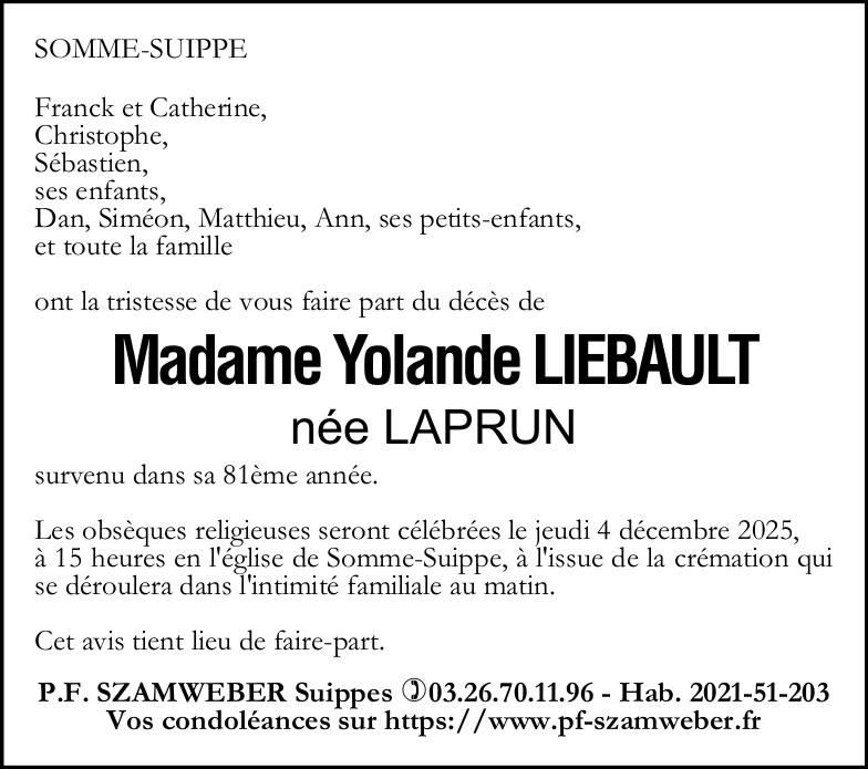 Décédée à Suippes (51600, France) le dimanche 30 novembre 2025 à l'âge de 81 ans