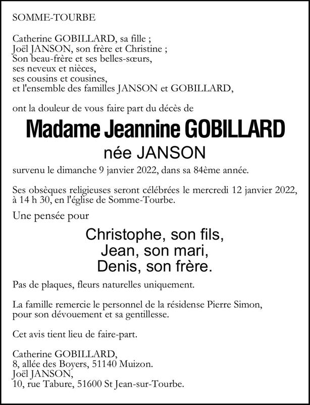 Madame Jeannine, Germaine, Yvonne GOBILLARD née JANSON