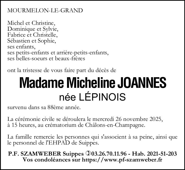 Décédée à Suippes (51600, France) le samedi 22 novembre 2025 à l'âge de 88 ans